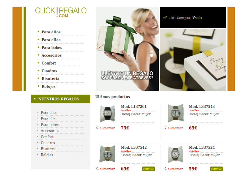 Tienda online de regalos y complementos. Realizado en CakePHP y MySQL.