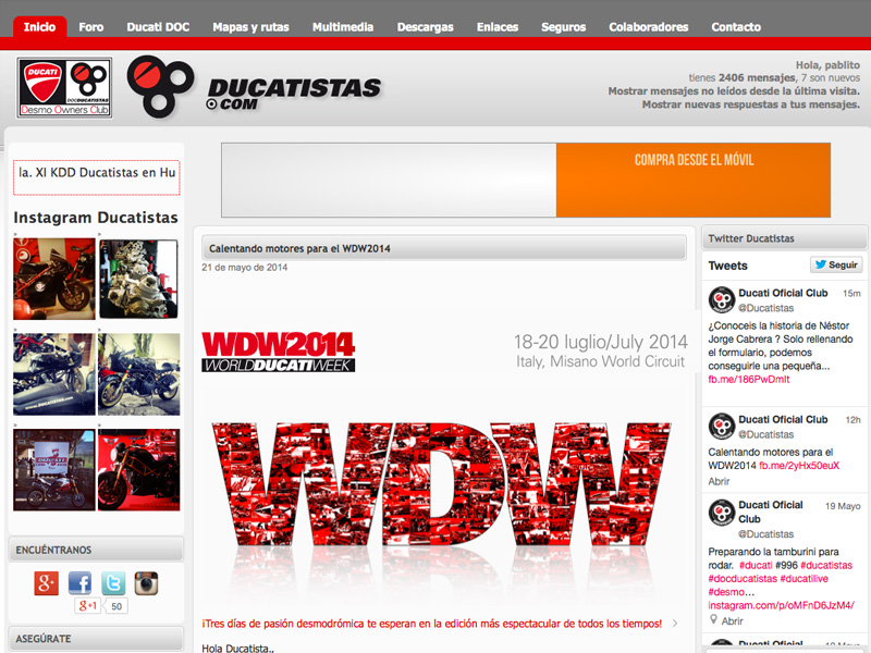Portal para la mayor comunidad de usuarios de Ducati del mundo. Realizado sobre WordPress y SMF.