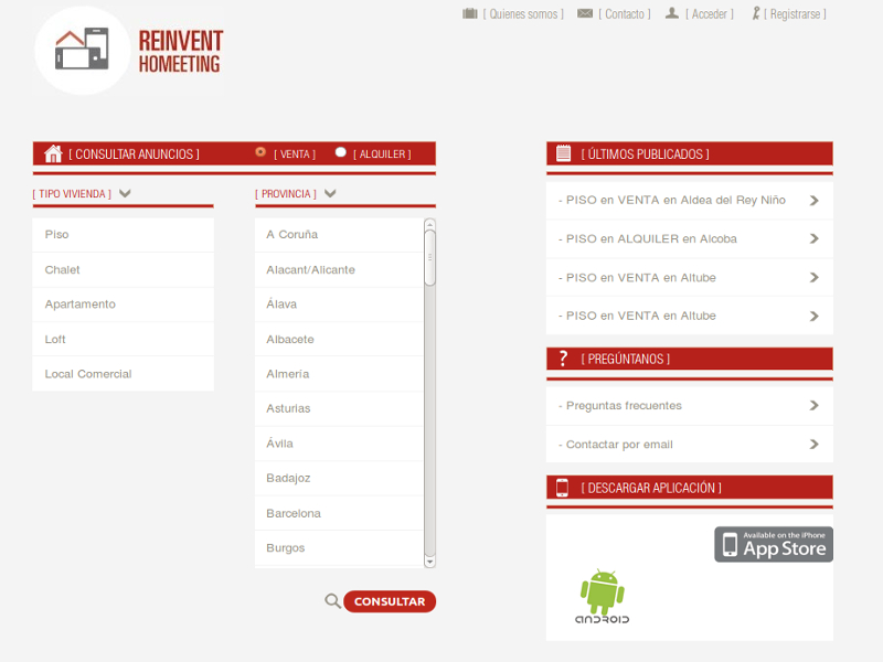 Backend y servicios web para aplicación iOS y Android. Plataforma web de venta y alquiler de inmuebles. Realizado en CakePHP y MySQL.