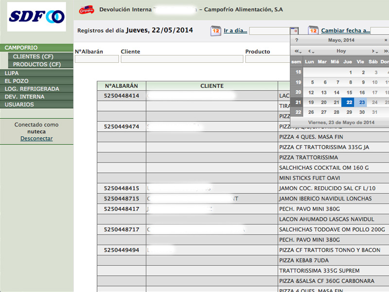 Herramienta para agilizar la gestión de incidencias y rutas de reparto de empresa de transporte en frío. Realizado en PHP y MySQL.
